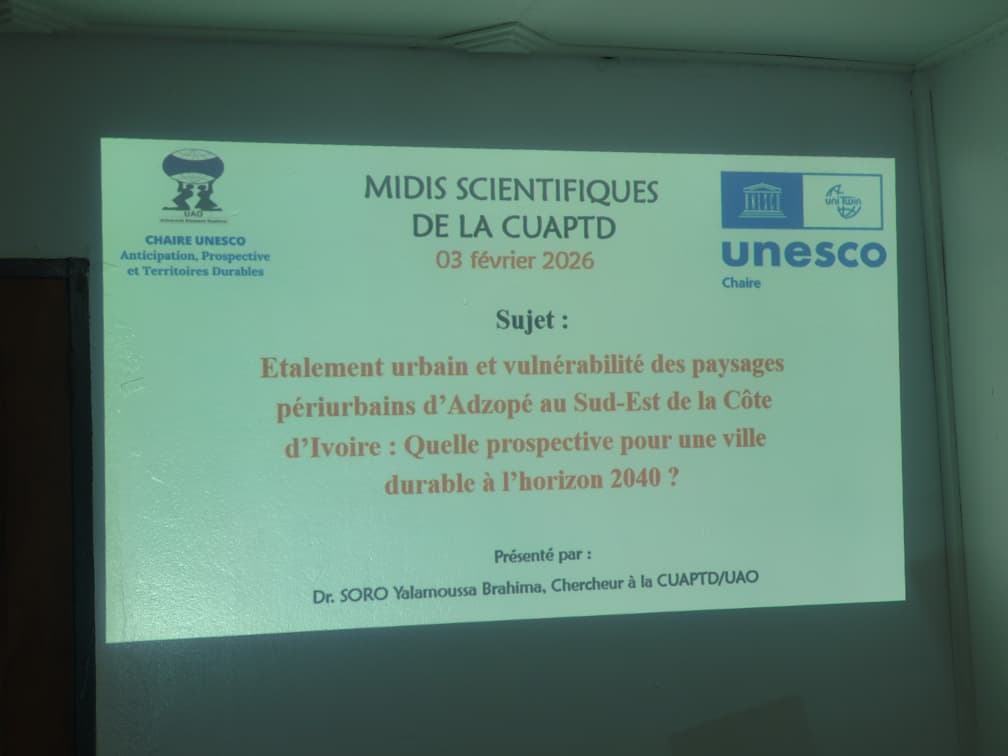 Le mardi 03 février 2026, la Chaire UNESCO Anticipation, Prospective et Territoires Durables (CUAPTD) a organisé sa première session des Midis Scientifiques de l’année.
